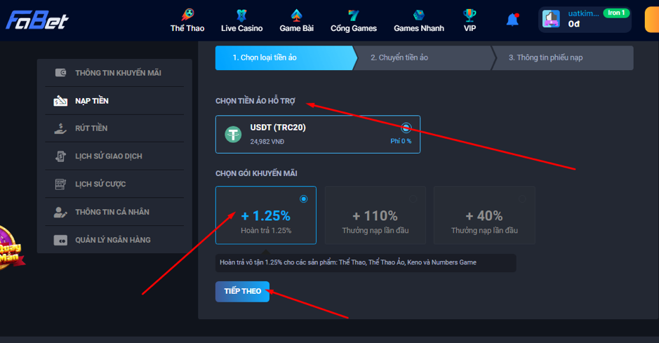 + Nạp tiền FaBet theo hình thức tiền ảo