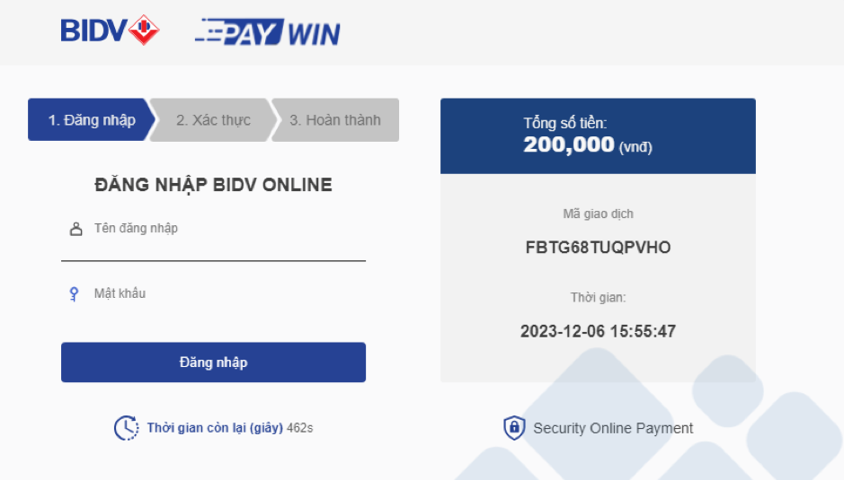 Thông tin giao dịch tiền gửi bằng Paywin như hình
